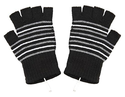 EUBUY Stripe Pattern USB2.0 Fingerless Heating Knitting Wool Hands Warm Gloves Gloves (Black)
