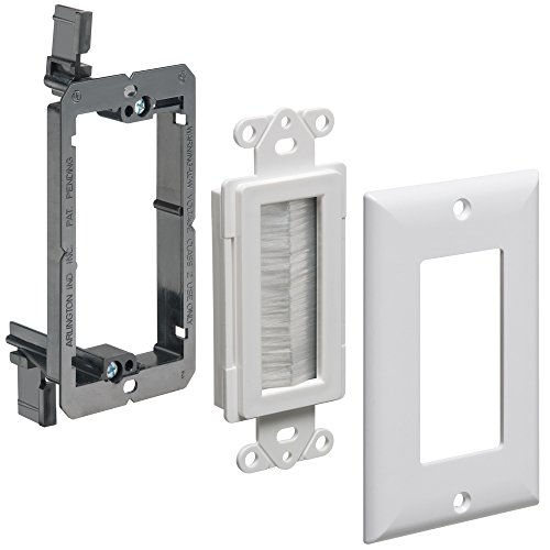 Arlington Industries LVCED135WP-1 Cable Entry Device with Brush-Style Opening, Low-Voltage Bracket and Wall Plate, 1-Gang, White, 1-Pack