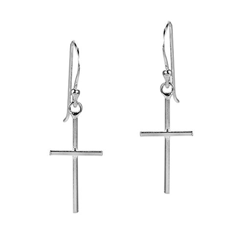 Simple Skinny Cross .925 Sterling Silver Dangle Earrings