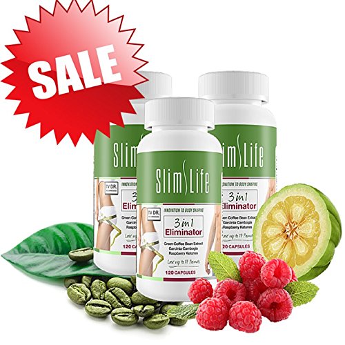Slim Life Science, 3in1 Eliminator -Svetol Green Coffee Bean Extract, Garcinia Cambogia & Raspberry Ketones (120 Capsules) - 100% Lifetime Happiness Guarantee
