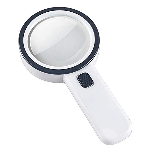 10X Handheld Reading Loupe Magnifier with 10 LED Light (Plastic and Glass, White, within 2 Batteries) Llluminated Magnifying Glass for Macular Degeneration, Craft and Hobby