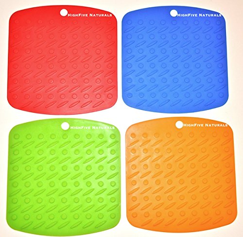 Silicone Pot Holders Premium (4) Trivet Hot Mats, Heat Resistant Pads, Non-Skid Kitchen Accessories