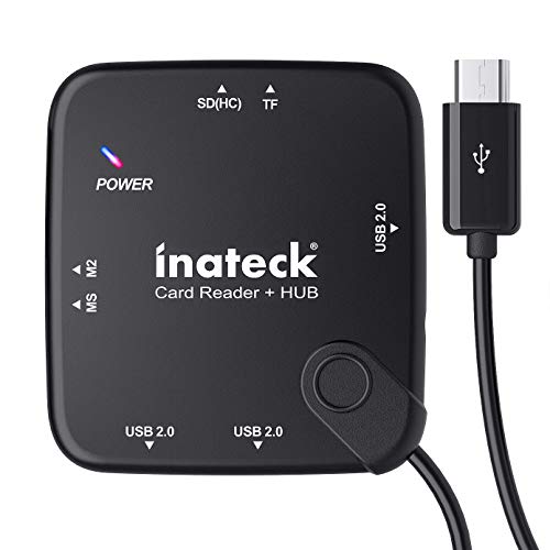 Inateck Micro USB Card Reader Hub, USB OTG Adapter with SD/TF/MS/M2 Card Slot and 3 USB 2.0 Ports, HB3001G
