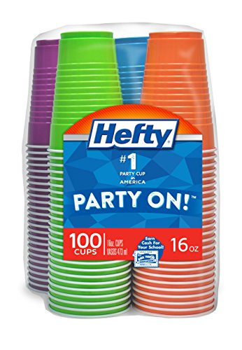 Hefty Disposable Plastic Cups in Assorted Colors -16 Oz, 100Count