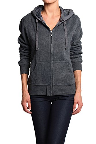 TheMogan Women's Casual Full Zip Fleece Hooded Track Jacket-Grey-3XL