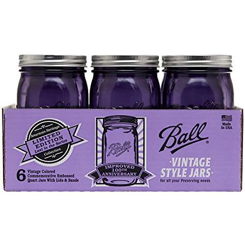 Ball Jar Ball Heritage Collection Quart Jars with Lids and Bands, Purple, Set of 6