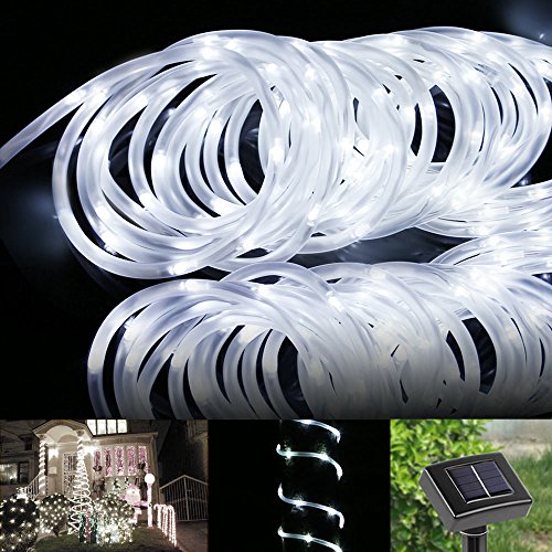 LE® 23ft LED Solar Rope Lights, Waterproof, 50 LEDs, 1.2 V, Daylight White, Portable, with Light Sensor, Outdoor Rope Lights, Ideal for Christmas, Wedding, Party