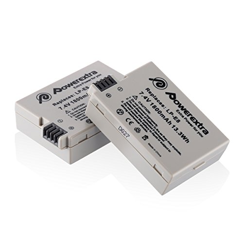 Powerextra 2 Pack 7.4V 1800mAh Li-ion Replacement Canon LP-E8 Battery for Canon EOS Rebel T3i, T2i, T4i, T5i, EOS 600D, 550D, 650D, 700D, Kiss X5, X4, Kiss X6, LC-E8E