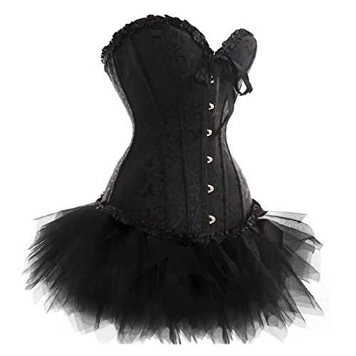 Plus Size 819+7008 Black Lace Up Overbust Corset Bridal Lingerie With Tutu XXXXXX-Large