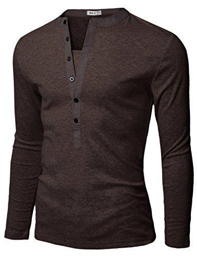 Doublju Mens Long Sleeve Henley T-Shirts with Button Placket, Brown US XX-Large/Asia XXX-Large