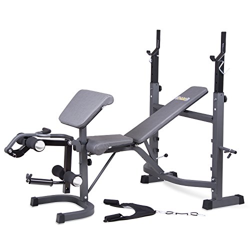 Body Champ Olympic Weight Bench with Preacher Curl, Leg Developer and Crunch Handle, Dark Gray/Black BCB5860