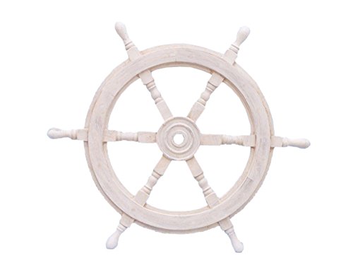 Hampton Nautical Classic Wooden Whitewashed Decorative Ship Steering Wheel 24" - Nautical Home Decoration