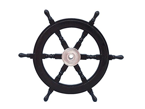 Hampton Nautical Deluxe Class Black Wood and Chrome Pirate Decorative Ship Steering Wheel 24" - ation