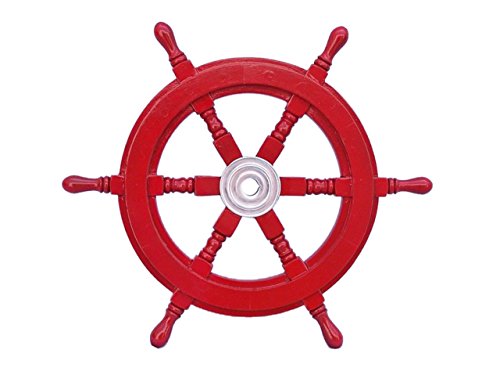 Hampton Nautical Deluxe Class Dark Red Wood and Chrome Decorative Ship Steering Wheel 18" - ating