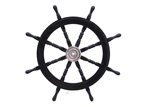 Hampton Nautical Deluxe Class Wood and Chrome Pirate Decorative Ship Steering Wheel 36" - ation