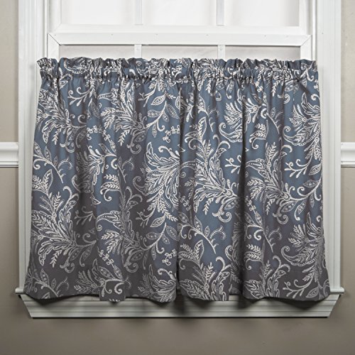 Ellis Curtain Floating Leaves Tailored Tiers, 68" x 24", Blue