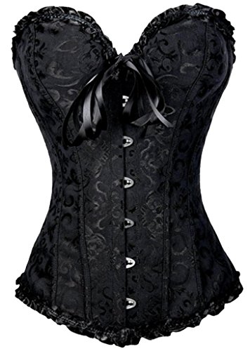 Senchanting Women's Satin Lace up Overbust Corset Bustier Plus Size + G-string (Black, 4XL)