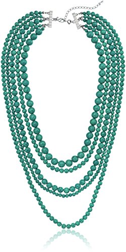 Blue Turquoise Stone 5-Row Multi-Beaded Strand Necklace, 32"+3" Extender