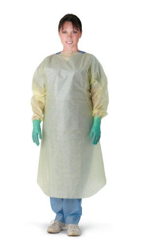 Medline NON27SMS5 Thumb Loop Over-The-Head Isolation Gown, Large, Yellow (Case of 100)