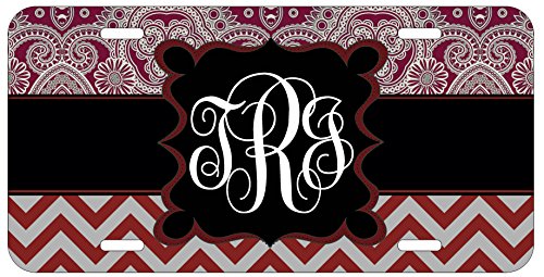 Personalized Monogrammed Chevron Red Grey Ornamental License Plate Auto Tag