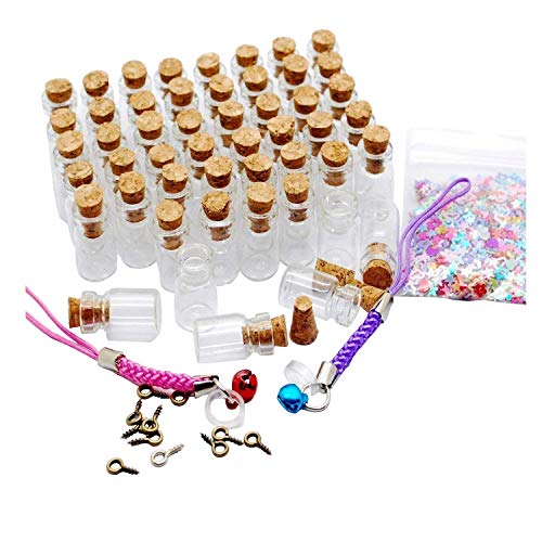 Femitu Wowlife 50pcs 0.5ml Vials Clear Glass Bottles with Corks Miniature Glass Bottle with Cork Empty Sample Jars Small 18x10mm