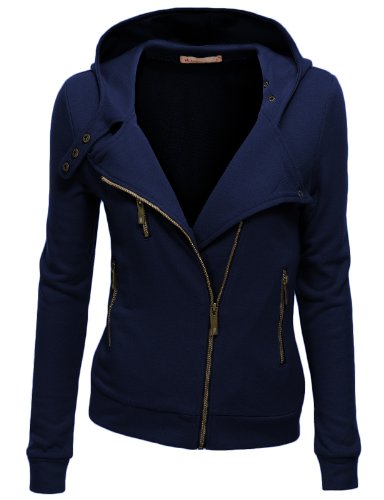 Doublju Slim Fit Fleece Zip-up Hoodie Jacket with Zipper Point for Women with Plus Size Navy 3XL