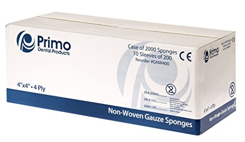 Primo Dental Products GNW400 Gauze Sponges, Non-Woven, 4" x 4", 4-ply (Pack of 2000)