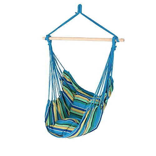 Sunnydaze Hanging Rope Hammock Chair Swing, Doubled Cushion Seat, Indoor or Outdoor Use, Ocean Breeze