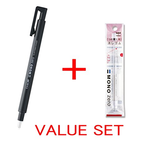 Tombow MONO Zero Eraser, Round Tip 2.3mm, Retractable, Black Barrel & 2 Conformity Refills Value Set(With Our Shop Original Product Description)