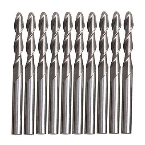 1/8" 22mm Carbide Ball Nose End Mills CNC Router Bits Double Flute Spiral Set Tool Pack Of 10