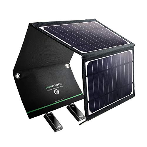 RAVPower Solar Charger 16W Solar Panel with Dual USB Port Waterproof Foldable Camping Travel Charger Compatible iPhone Xs XS Max XR X 8 7 Plus, iPad, Galaxy S9 S8 Edge Plus, Note, LG, Nexus and More