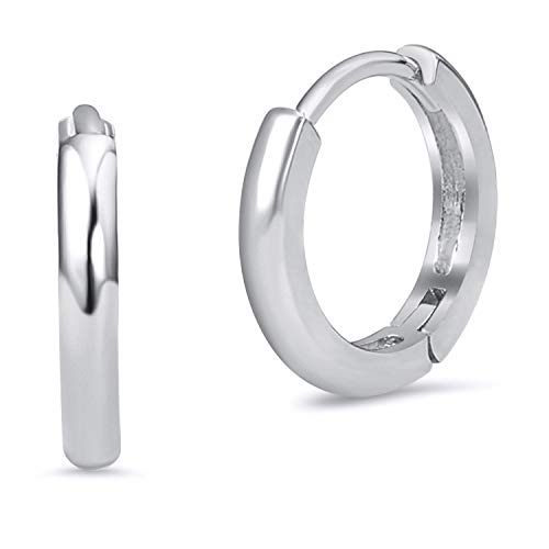 925 Sterling Silver Rhodium Plated 2mm x 13mm Small Plain Hoop Huggie Earrings