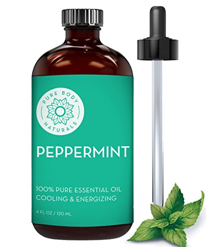 Peppermint Essential Oil, Pure and Undiluted, Large 4 oz Peppermint Oil, Therapeutic Grade Aromatherapy Oil for Diffuser, Relaxation, by Pure Body Naturals