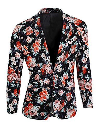 uxcell Men One-Button Notched Lapel Floral Blazer Jacket