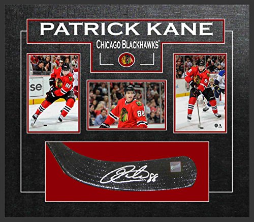 Frameworth Patrick Kane Signed Stickblade Framed Blackhawks W3-4x6 Photos - Autographed NHL Sticks