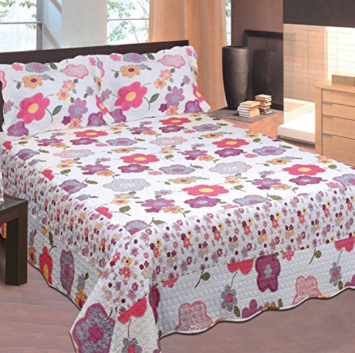Mk Collection 2 Pc Bedspread Teens/girls White with Pink Purple Floral New