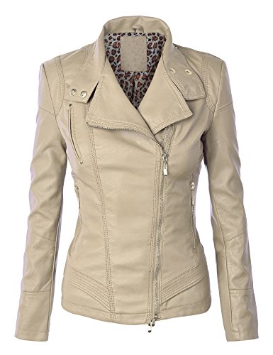 Made By Johnny MBJ Womens Panelled Faux Leather Quilted Moto Jacket