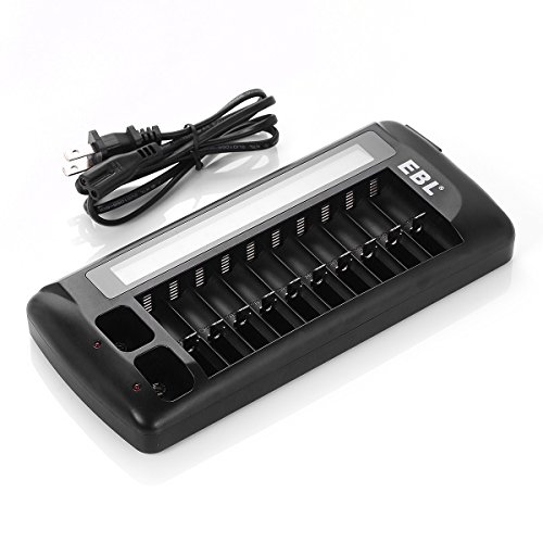 EBL 12 Bay Battery Charger with LCD Display for AA AAA 9V NIMH NICD Rechargeable Batteries