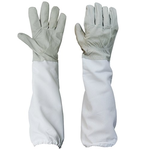 BESTOPE 2019 Upgraded Beekeeping Gloves Premium Goatskin Leather Beekeeping Supplies with Long Canvas Protective Sleeves & Elastic Cuffs