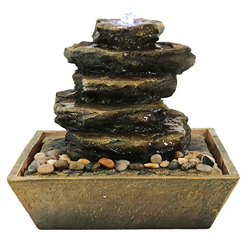 Sunnydaze Tabletop Water Fountain with LED Light - Cascading Rocks Indoor Waterfall Feature - Quiet Water Sound for Relaxation - Small 12 Inch Desktop Size