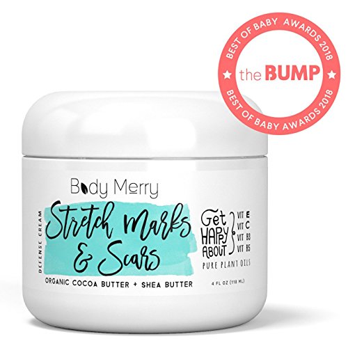 Stretch Marks & Scars Defense Cream Daily Moisturizer w Organic Cocoa Butter + Shea + Plant Oils + Vitamins to Prevent, Reduce and Fade Away Old or New Scars Best for Pregnancy, Men/Bodybuilders (4oz)
