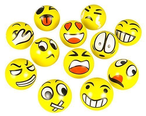 FUN Emoji Face Squeeze Balls- 12 ~ 3'' Stress Relax Emotional Toy Balls ~ Fun Office Holiday Gift ~ Stocking Stuffer ~ Gag Toy
