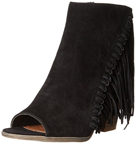 Rampage Women's Lauryn Fringe Peep Toe Open Back Heeled Ankle Boho Bootie, Natural , 8.5 M US