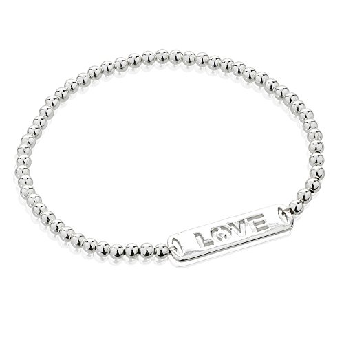 Chuvora 925 Sterling Silver Engraved Message of Love Rectangle Modern Minimalist ID Stretch Bracelet