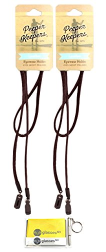 Peeper Keepers Eyeglass Retainer| Leather Sunglass Holder | Brown, 2pk | w/Microfiber Cloth & Screwdriver