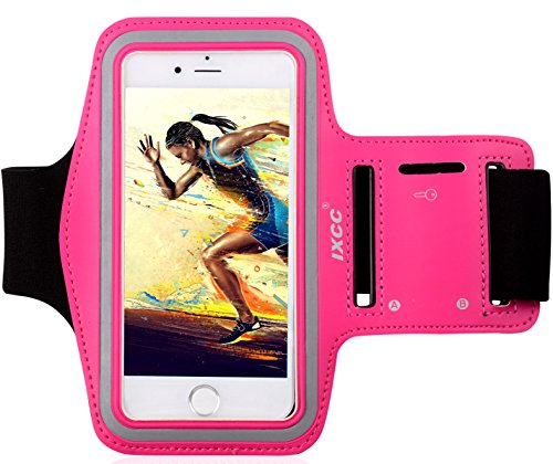 iXCC Racer Series Sport Gym Armband with Scratch-Resistant Dual Arm-Size Slots and Key Pocket for iPhone 6, 6s, 5s, 5, 5c, SE, iPod MP3 Player - Pink
