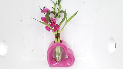 Jmbamboo-live Heart 5 Style Lucky Bamboo Arrange w/ Hand Paint pink Ceramic Pot