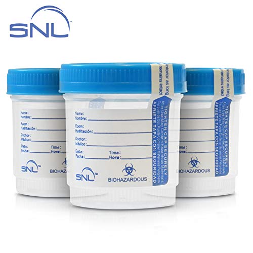 SNL Quality Sterile Specimen Cups, Screw-on Cap with Tamper Evident Seal, 3oz., Blue Cover - Pack of 3