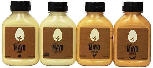Hampton Creek Just Mayo Variety Pack of 4 Flavors (1 Each Plain, Chipotle, Garlic, Sriracha), 8oz Bottles (Pack of 4)