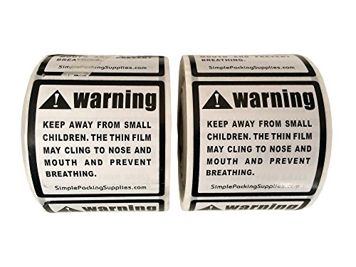 Suffocation Warning Labels for FBA. 2 Rolls of 500 Labels (1000 labels total), 2"x2" Guaranteed to Stick.